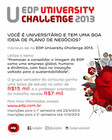 EDP University Challenge 2013! Promover ideias criativas, inovadoras e empreendedoras na área da comunicação, marketing, administração, etc.
